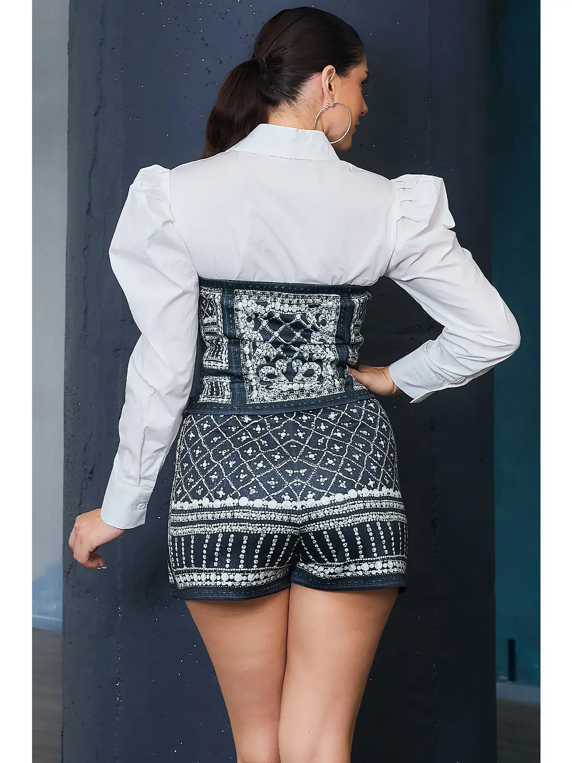 Fierce yet refined, this Leopard Denim Effect Chiffon Blouse & Skirt Set brings effortless sophistication to any occasion. The airy chiffon fabric, kissed with a denim-inspired texture, creates a perfect balance of softness and edge. Designed to move with grace and confidence, this set radiates modern luxury — ideal for brunches, art events, or elegant evenings out.